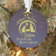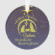 Memorable and collective Nativity Scene Joseph Mary and newborn baby Jesus on a Starry Christmas Night decorative editable year on the back of ornament.
