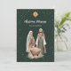Beautiful Christian Christmas card featuring a scene with Mary, Joseph and the infant Jesus Christ in the manger in Bethlehem.