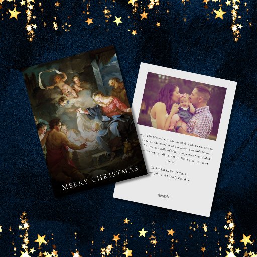 Add an elegant touch to the Christmas gift giving of your Catholic church or Catholic charity organisation with these religious Christmas ornaments featuring a nativity scene painted by artist Jean-Baptiste Marie Pierre in the late 18th century depicting the Holy Family surrounded by saints and angels. The back includes the words "Merry Christmas" and room for you to write the name of your Catholic church or Catholic charity, I have designed this ornament as part of my Golden Light Christmas collection for Catholics and Christians wanting to add a spiritually meaningful touch to their Christmas decorating and gift giving. Be sure to browse the other products in the collection to create a coordinated look for your cards, gifts and decorations this Christmas season. To change fonts or colours or reposition text boxes in this template, please scroll past the text template boxes and click "Edit using design tool". If you need additional help, take advantage of Zazzle's free service at https://www.zazzle.com/live or contact me through Zazzle's messaging system. This product is part of a collection. If you need something that you do not see in this collection, please let me know. I would be happy to design it for you! Please note, I create the designs, but all printing and shipping is done by Zazzle at its production facilities, so if there is any issue with your order, please contact their customer support at 1-888-892-9953 or https://www.zazzle.com/about/ask.