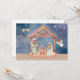Christmas card illustration featuring a watercolor Nativity scene, with space for a personal message on the back.