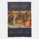 A vintage styled nativity scene of the holy family with Jesus born in the stable in gold.