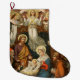 Christmas stocking with Baby Jesus Virgin Mary and Saint Joseph in Manger with angels
