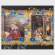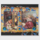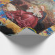 Colourful, magical atmosphere of the Christmas by German painter Matthias Grunewald ,Details from Second state of the Isenheim Altarpiece ,expressive and intense style of late mediaeval Central European art into the 16th century.Oil on wood. Elegant,classic, bright and merry Christmas design on parchment with antique Florentine floral motifs ,shiny 3D blue sapphire and red ruby gemstones .