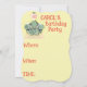 Adorable birthday invitations! Natosha, the elephant speller is so excited about your little girl's birthday party. You can customise these birthday invitations to fit your child's need. These birthday cards have a cute cup cake, party hats and birthday present.