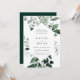 Natural watercolor botanical greenery geometric frame, wedding invitation. Modern and simple typography design style template. Back of card features coordinating solid emerald green colour.