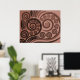 Natural brown stylised fern-frond curls poster print that allows colour customisation by modifying the fill colour. Like this, it is possible to adjust the home decor for your wall to any existing or newly chosen accent coloration. Light- to mid-range tones work best to colour it your way. For custom designs or help with colour customisation please contact https://t.me/KBMD3signs_chat.