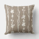 A farmhouse inspired taupe pillow with painterly off white flowers.
