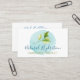 These business cards are all about natural, organic hydration. The design features a blue watercolor stain with a leaf over the business info. Use this business cards for handmade skincare and spa products such as soap, exfoliating scrubs, and body butter.