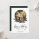 Happy Holidays signature script. Rustic nature watercolor pine branches, pinecones and berries, hoop photo frame. Coordinating pine green colour backing.