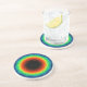 A "Natural Mandala" themed coaster with a colourful round rainbow over it.