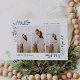 This simple and elegant nature-inspired holiday card features 3 vertical or portrait-orientated your favourite horizontal photos adorned at the corners with sprigs of graceful iced blue watercolor foliage. Personalise with your custom greeting (shown with "Merry Christmas"), the year, and your family name in modern lettering. An elegant botanical design for your Christmas greetings.