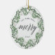 This holiday season, commemorate a special year with this elegant personalized photo Christmas ornament. A wreath of forest green painted watercolor mistletoe frames your family name, the year, and the word "merry" in chic calligraphy script. Add a photo to the reverse side with a matching wreath frame.