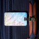 I was happy with the acrylic tag but it came with a thin leather strap to attach the tag to luggage (like a cat collar). I replaced the strap with a metal ring off of a key ring as the leather strap would come undone or break easily as luggage is sometimes handled without much care by airlines. Printing is great. Colours and positioning of the design I put on the tag were perfect. Very pleased.