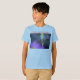 100% cotton so perfect for summer, It is a nicely designed t-shirt, the fabric is soft and the seams finished well, the body of the t shirt has no side seams. I bought a medium size for my two grandsons, aged 9 and 8 it will be slightly big on them but I would rather that than too small