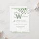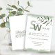This minimalist wedding stationery set features a nature-inspired botanical leafy design with delicate watercolor foliage in serene shades of soft green and white. Perfect for simple wedding celebrations, this elegant invitation showcases natural leaf patterns that exude calm, timeless charm, and organic beauty. The front highlights the couple’s initials surrounded by lush leaves, while the back includes a minimalist leafy banner — an elegant space to personalise with your own wedding details or names. Ideal for eco-lovers and those who cherish clean, natural aesthetics, this simple greenery wedding invitation balances sophistication with earthy grace.