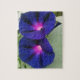 Image on 8" x 10" photo puzzle consists of twin deep pink-purple Morning Glory wildflowers and a green, leafy background.