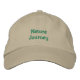 The words Nature Journey embroidered on a hat