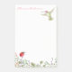 Beautiful soft-hued nature scene personalised post-it note pads monogrammed at the top left with her pretty name. A ladybug lingers in the flower garden as a hummingbird flutters high above. Custom monogrammed name in a lovely soft pink script font. Decorative personal desk notes for leaving sweet little messages to friends, family or co-workers.