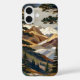 Elegant iPhone case featuring a beautiful mountain landscape with soft golden tones, forest details, and layered peaks. The refined composition creates a calm and scenic look inspired by nature.