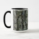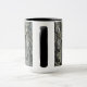 Opposite of mug's handle, there is a vertical semitransparent name banner. Banner is black and text is light. Text can easily be customised or rearranged. You can also adjust text font, size and colour.