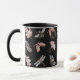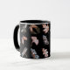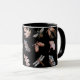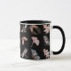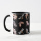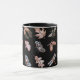 Nature print mug for coffee or tea. This print has bees, butterflies, dragonflies and leaves. The colours and copper grey and black on a black background. The inside and handle are black. Style: Combo Mug