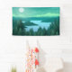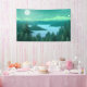 Forest on mountains river landscape background poster Bright sunny day in Green Mountain calm Lake Valley cartoon illustration summer season alpine wild nature outdoor hand drawn scenic view