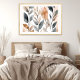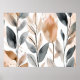 This print features a modern art abstract image of several botanicals in neutral shades of muted tan or beige and grey on a white background. This pretty poster has a boho chic aesthetic and will provide a touch of nature and sophistication to a living room, bedroom or bathroom. This unframed print is available in various sizes to fit standard frames.