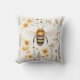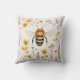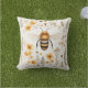 This is an image of a square decorative pillow featuring a detailed illustration of a honeybee at its centre, surrounded by a harmonious pattern of wildflowers and foliage in warm, earthy tones. The bee is rendered with care, showcasing its iconic striped body and delicate wings, evoking a sense of nature's intricate beauty. The background is a soft, neutral colour that highlights the yellow and gold tones of the flowers and bee, creating a cosy and inviting aesthetic. Perfect for adding a touch of natural elegance to any living space, this pillow marries functionality with the serene beauty of the wild.