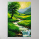 In the embrace of a picturesque green valley, nature's embrace is woven into a symphony of beauty. A lively stream rushes down the heart of the landscape, its sparkling waters a melody of life and movement. As the summer sun gently kisses the horizon, the mountains stand as stoic sentinels, casting their majestic shadows. Here, amidst the harmony of elements, the valley basks in the warm embrace of a perfect summer day.