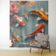 A minimalist artwork capturing the serene beauty of a koi pond, where graceful fish glide beneath the water's surface. Subtle rose and gold accents evoke a sense of peace and harmony, while symbolizing good fortune and the timeless tranquility of nature's delicate balance. "Original Image was generated by Meta AI. AI generated artwork. Licensed under CC BY-SA 4.0."