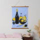A minimalist yet captivating still life illustration that combines simplicity with vibrancy. The composition features a harmonious arrangement of objects: a wine bottle, a carafe, a fruit bowl, and scattered fruits. The palette is striking, with deep blacks, warm yellows, and a serene blue background creating a bold contrast. The crisp lines and minimal details highlight the essence of each object, evoking a sense of elegance and sophistication. This artwork celebrates the beauty of everyday objects through a modern and stylish lens, perfect for adding a touch of refined charm to any space