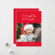 Send adorable holiday cheer with this fun photo card. With the words "naughty but cute" in a modern script, this Christmas card design is perfect for kids, babies, pets and more. It features a festive red background, a single horizontal photo and custom text at the bottom. The back is a matching festive red with white speckles.