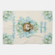 Naughty Chickens Lay Deviled Eggs! Vintage chickens on an ivory background with turquoise scrolls and turquoise blue and white flowers.