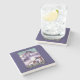 The coasters are gorgeous, a quality feel and heavy weight. They look like a precious archeological find. A rustic stone juxtaposed with a modern floral black and white print. I like the way the print goes slightly imperfect on the cut stone edges giving them a kind-of natural beauty.