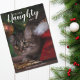 On the naughty list Christmas pet photo holiday card. Photo template via Pixabay licensed under CC0 and must be replaced with your own photo