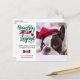 The card prominently showcases a photo of your dog, allowing their festive spirit to shine through. The bright and cheerful colours and playful font make this card a fun and unique addition to any holiday card collection.