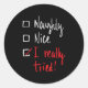 Naughty Nice I Really Tried - Funny Christmas Classic Round Sticker