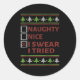 Naughty Nice I Swear I Tried Christmas Kids Women Classic Round Sticker