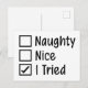 Naughty Nice I Tried Funny Christmas Quote Holiday Postcard