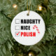 Naughty Nice Polish Candy Cane Ceramic Ornament