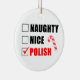 Naughty Nice Polish Santa Checklist featuring a cartoon candy cane. A funny Christmas ornament for a Polish household.