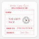 Add a festive touch to your holiday gifts, treat bags, and envelopes with these charming December 25th "Naughty Or Nice Christmas Special Delivery" Special Overnight delivery stickers! Featuring a classic North Pole Express Reindeer design and bold red and white Christmas colours, these round stickers are perfect for sealing packages with a little extra cheer and anticipation. Great for gifting, crafting, or party favours! This sticker is a part of a Christmas collection with coordinating items available. We encourage you to explore the full set to create a perfectly matched party celebration.