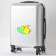 The stick looks amazing. Unfortunately, it would not stick on our suitcase as it was textured. When we found a non-textured (smooth) suitcase, the sticker stuck and looks great. The printing looked awesome.