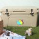The stick looks amazing. Unfortunately, it would not stick on our suitcase as it was textured. When we found a non-textured (smooth) suitcase, the sticker stuck and looks great. The printing looked awesome.