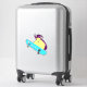 The stick looks amazing. Unfortunately, it would not stick on our suitcase as it was textured. When we found a non-textured (smooth) suitcase, the sticker stuck and looks great. The printing looked awesome.