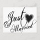 Naughy Grunge Script - Just Married Heart Black Announcement Postcard