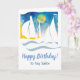 Personalize this cool nautical greeting card for your sailor (or anyone) ... Birthday, Anniversary, Father's Day, or any special occasion. Abstract geometric design with silhouettes of sail boats in the blue ocean waves with full moon.
