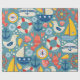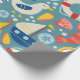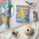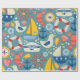 A lively pattern featuring nautical elements like sailboats, anchors, lifebuoys, seagulls, shells, compasses, and a charming lobster. Set against a teal background, this design captures the essence of seaside adventures with vibrant colours and playful imagery.