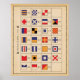 Nautical alphabet signal flags are printed with their corresponding alphabet letters and their original 1913 radio codes used by the U.S. Navy. Design resembles an antique print, with simulated off-registration printing and yellowed paper texture (see last photo for detail) for a faux vintage look.