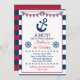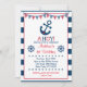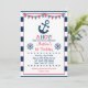 This adorable invitation features our anchor and heart illustrations in navy blue and red with a nautical stripe border.